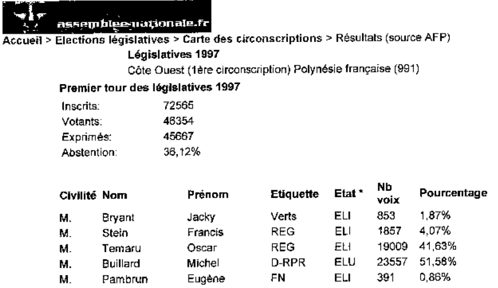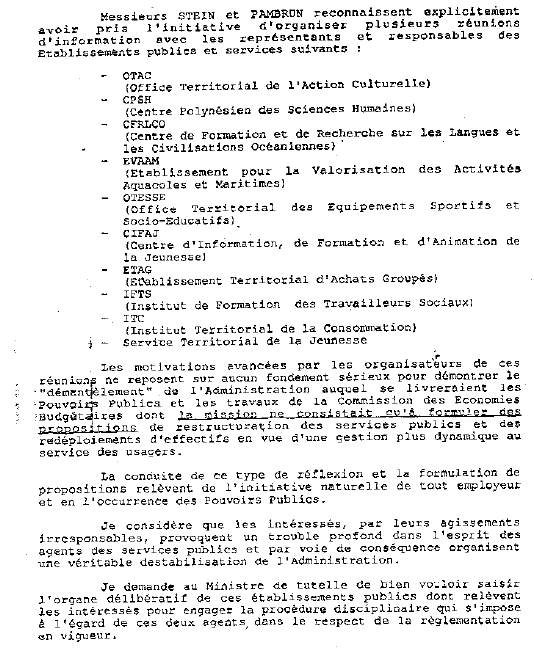 La motion de censure décapitait 4 mois après ce fameux TAUI historique, le 1er gouvernement de TEMARU.