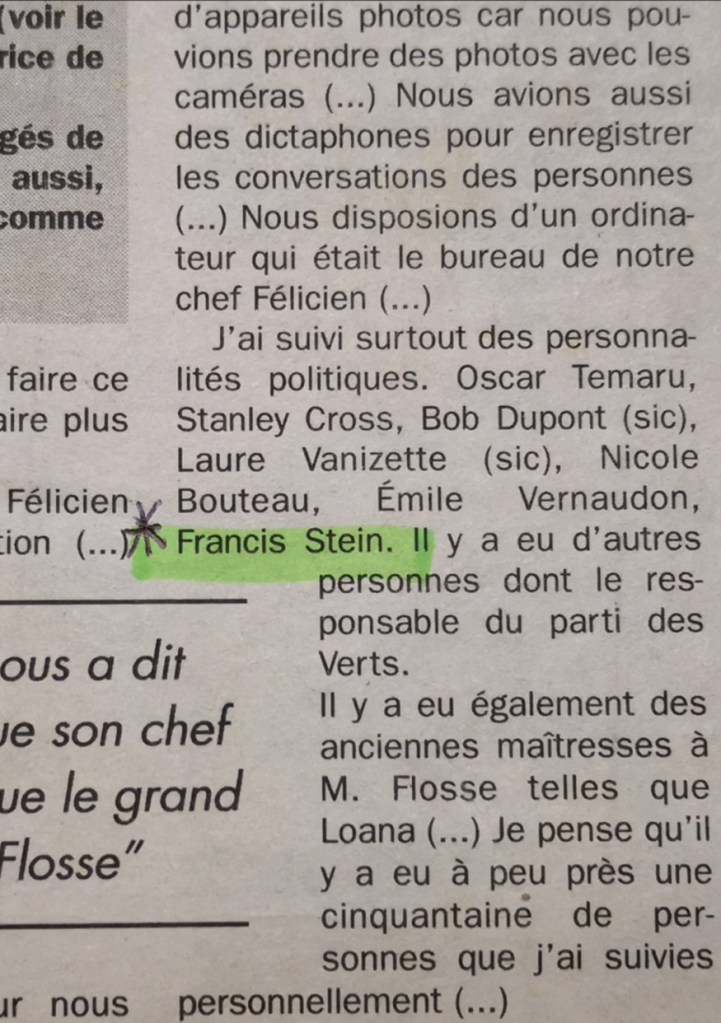 Tout au long de sa carrière professionnelle comme politique et syndicale de novembre 1985 à ce jour, Francis STEIN n’a jamais été associé de près ou de loin à l’appareil politique TAHOERAA, à ses enjeux, ses satellites… et affirmer le contraire confine à l’aberration, au ridicule et à affirmer par la même occasion que « la lune est carrée » tant qu’on y est… C’est totalement infondé et absurde. Tous ceux qui le connaissent le confirmeront, à commencer par ceux de ce parti…
