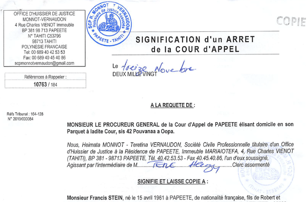 Pour rappel, le média TAHITI-INFOS avait publié dès le 4 octobre 2020 dans un article de 4 pages -après « s’être procuré la décision de justice » (arrêt de la chambre de l’instruction d’une trentaine de pages rendu le 29 septembre 2020 rejetant la QPC et la demande d’annulation de ma mise en examen) – plusieurs éléments et « dévoilé pour la première fois la teneur exacte des toutes dernières investigations de cette longue et minutieuse enquête… ».