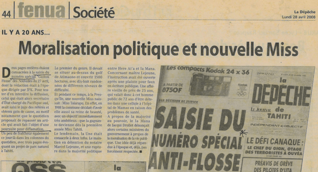 FLORILEGE DE SCOOP – N° Spécial publié en 1988 dans le quotidien « Les Nouvelles de TAHITI » par le plus célèbre des rédacteurs en chef de TAHITI