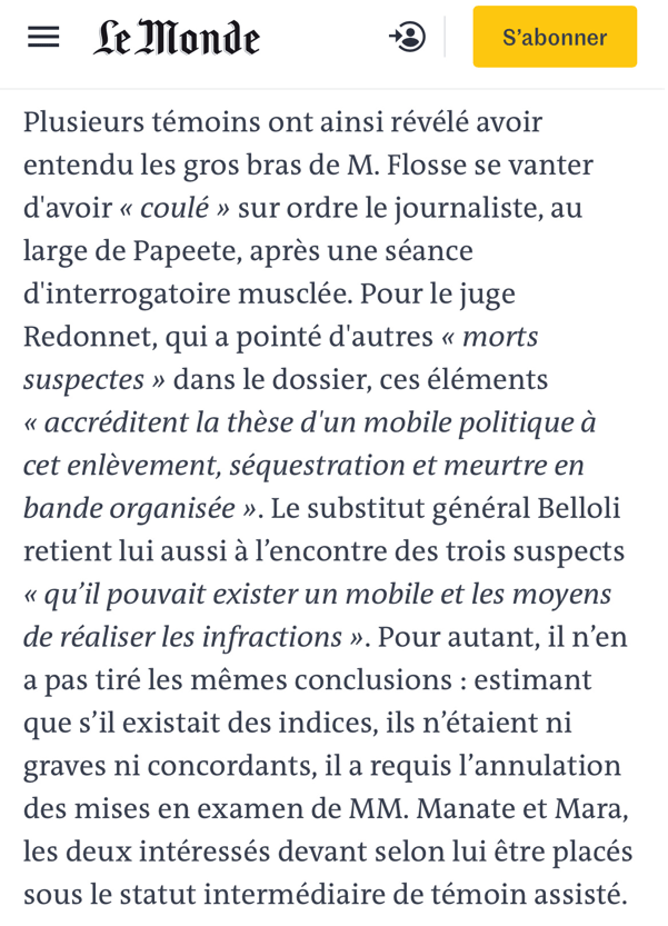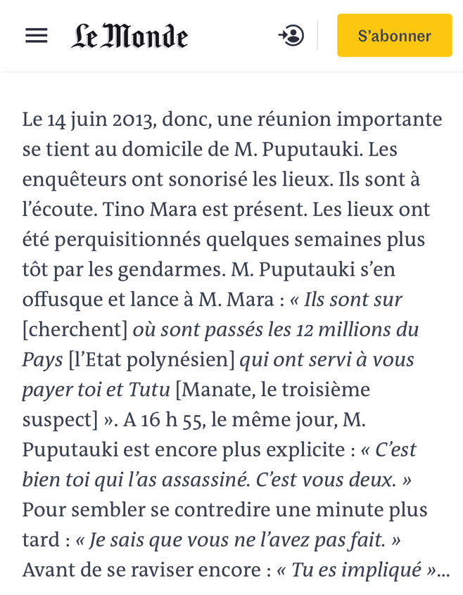 Et quand je vois ça, c’est un vrai film ! Ce n’est pas lui, on l’a poussé, on lui a dit de faire comme ça parce qu’on veut descendre Flosse et Rere Puputauki ! Ils ont manipulé ce jeune-là, il est jeune, il a des enfants, et maintenant comment on va faire ?