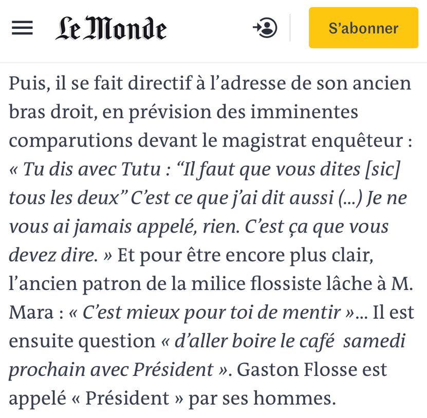 Je demande à tous ces gens-là qui ont voulu mettre ce jeune-là, je demande à Oscar, à Maker, à Annie Rousseau, comment on va faire pour les enfants de ce jeune que vous avez manipulé, que vous avez mis en prison ? Et c’est là que tu vois qu’on ne peut pas mettre ces gens-là au Gouvernement ! Ils ne vont faire que ça, manipuler les gens pour arriver à leurs fins.