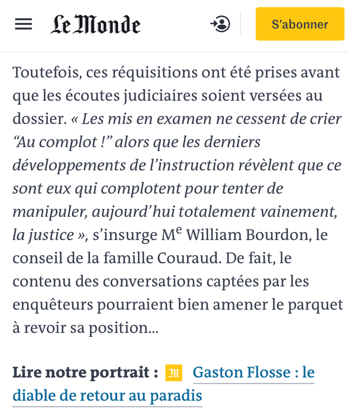 Je pense que si Annie Rousseau ma, Oscar ma et Robert ma qui ont mis en place cette dénonciation calomnieuse, c’est peut-être eux, ils savent qui a tué JPK, du moment qu’ils ont raconté une histoire à dormir debout ! Je peux dire aussi qu’il n’y a jamais eu de RG au GIP. Alors, quand j’entends ça, Maker ma, Oscar ma qui disent ça dans la Dépêche, dans tous les journaux, que le GIP a un service de RG, il n’y a jamais eu ça !