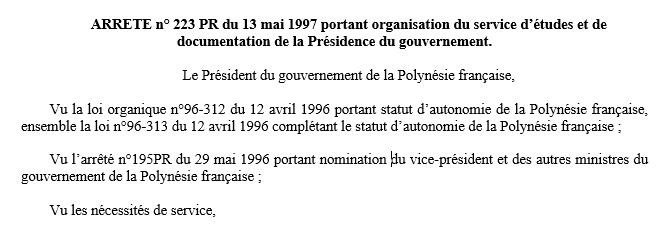 CRÉÉ EN MAI 1997, LE SERVICE D’ÉTUDES ET DE DOCUMENTATION DIRECTEMENT RATTACHÉ AU PRÉSIDENT DU GOUVERNEMENT DE LA POLYNÉSIE FRANCAISE, GASTON FLOSSE ET DÉVOUÉ A SA PERSONNE, FÛT MAINTENU SOUS LA PRÉSIDENCE D’OSCAR TEMARU EN 2004
